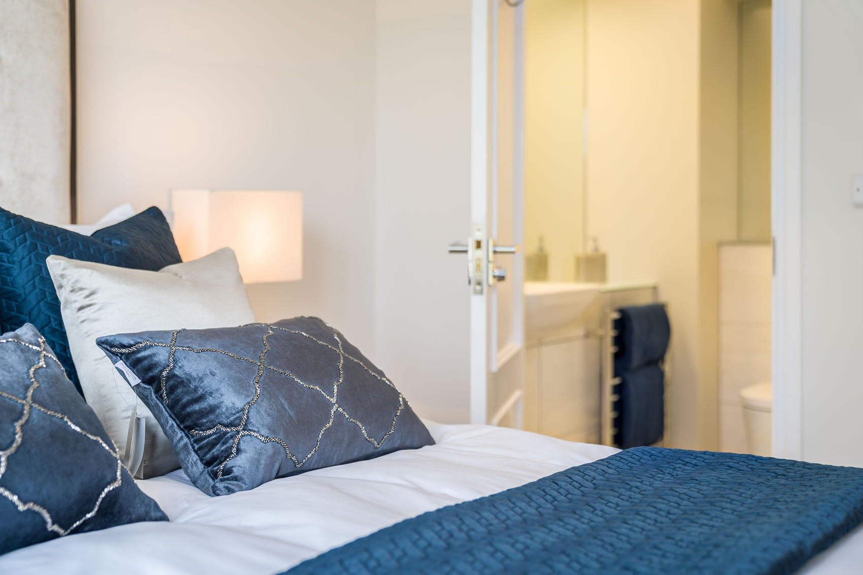 Bathrooms have the class of a boutique hotel, with high-end sanitary ware, taps and showers and porcelain tiling throughout. A huge shower, mirrored wall, recessed shelving and concealed cistern are design touches you will love.